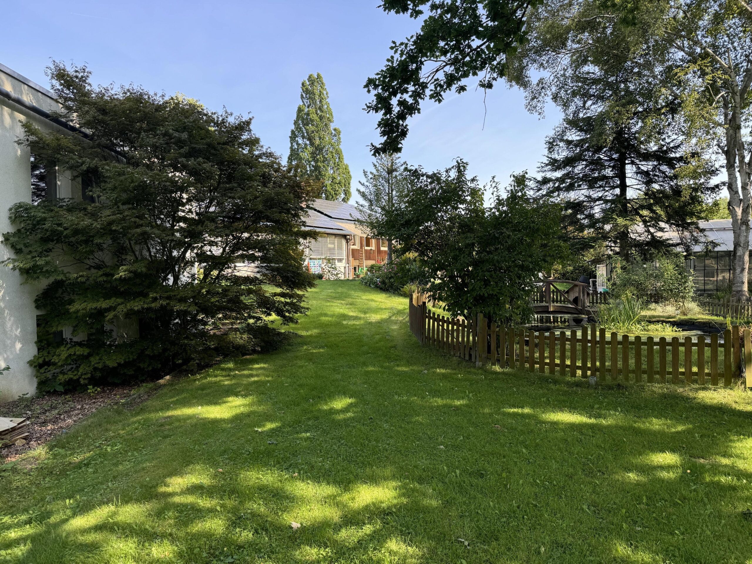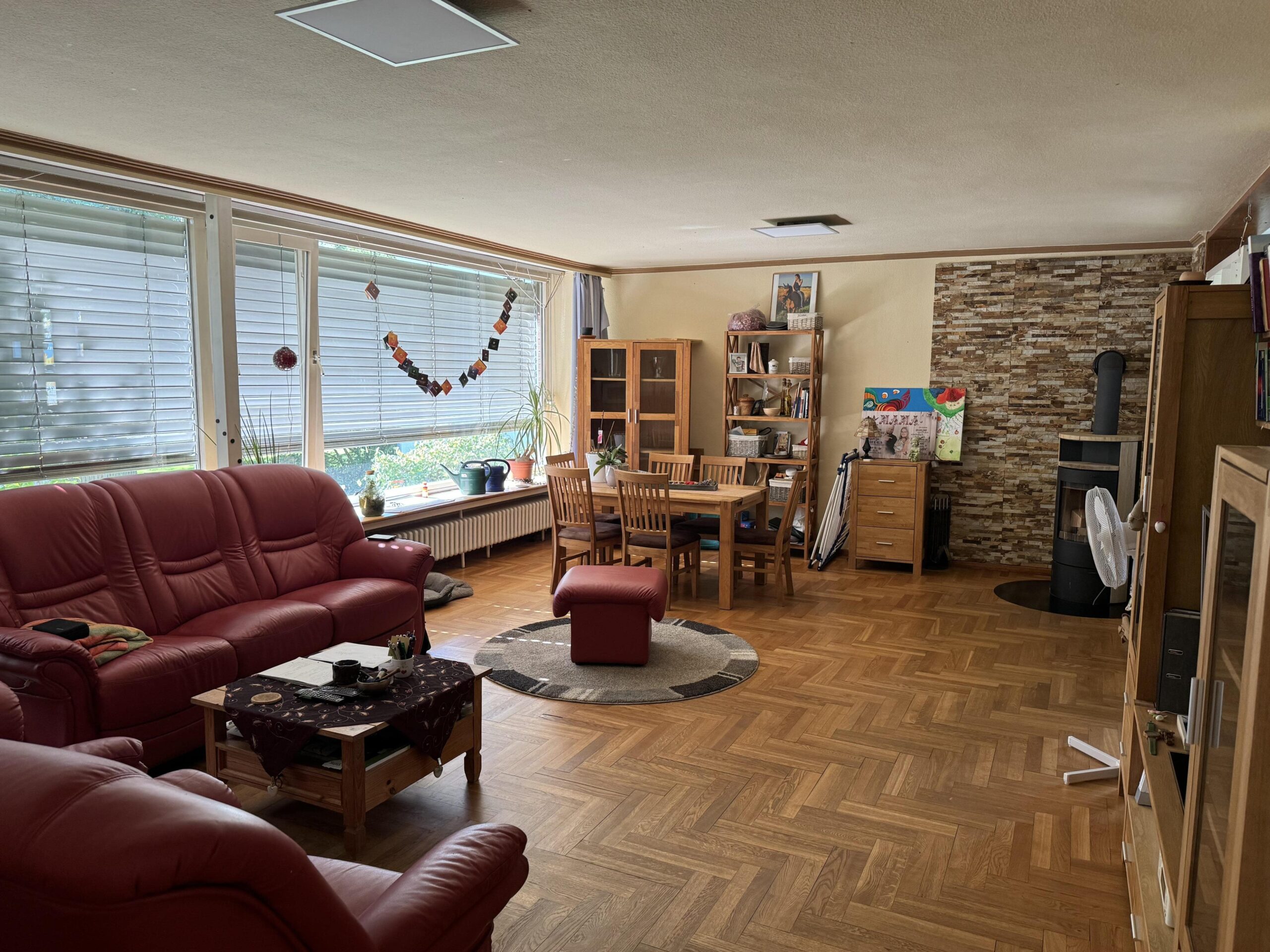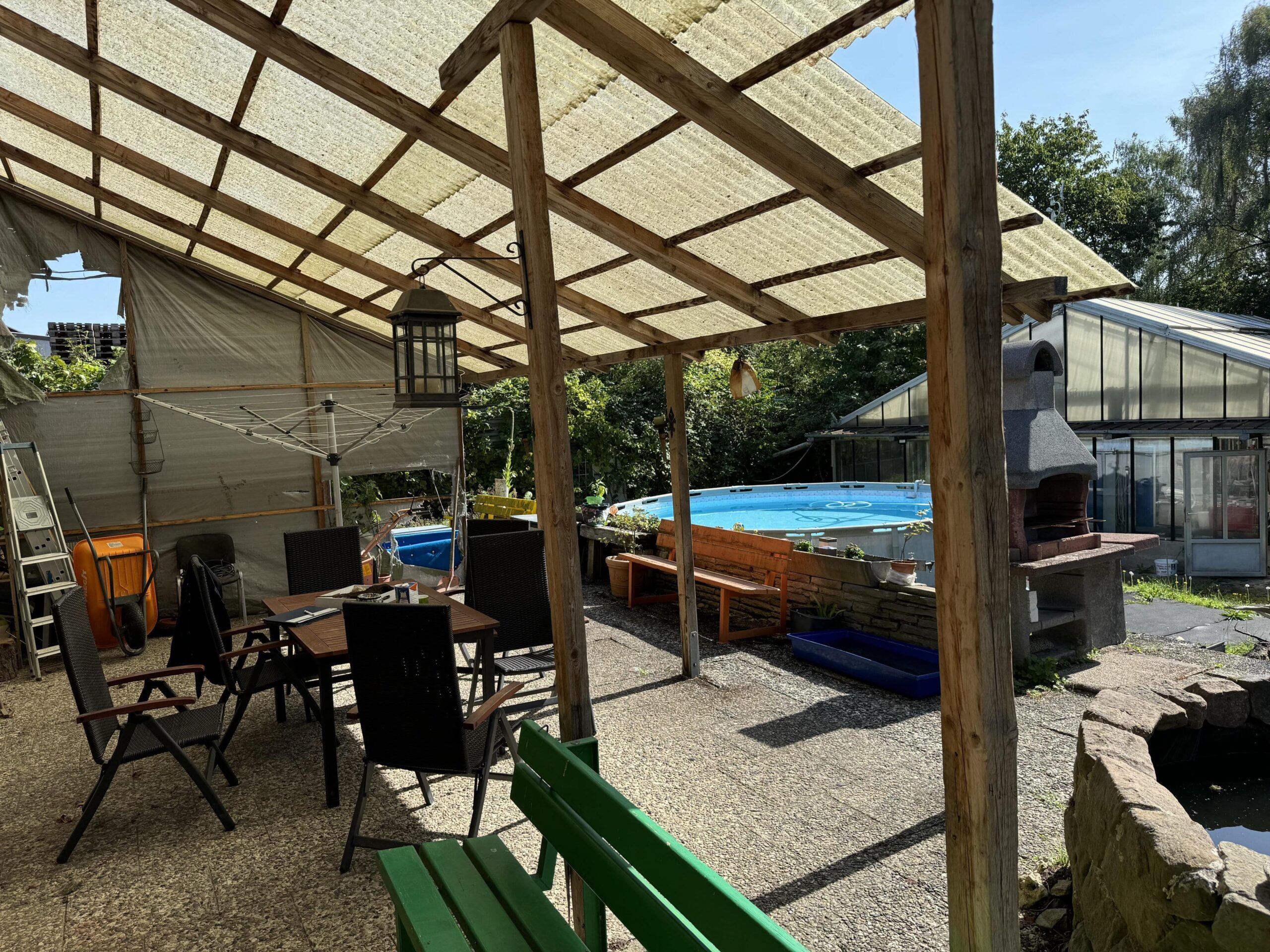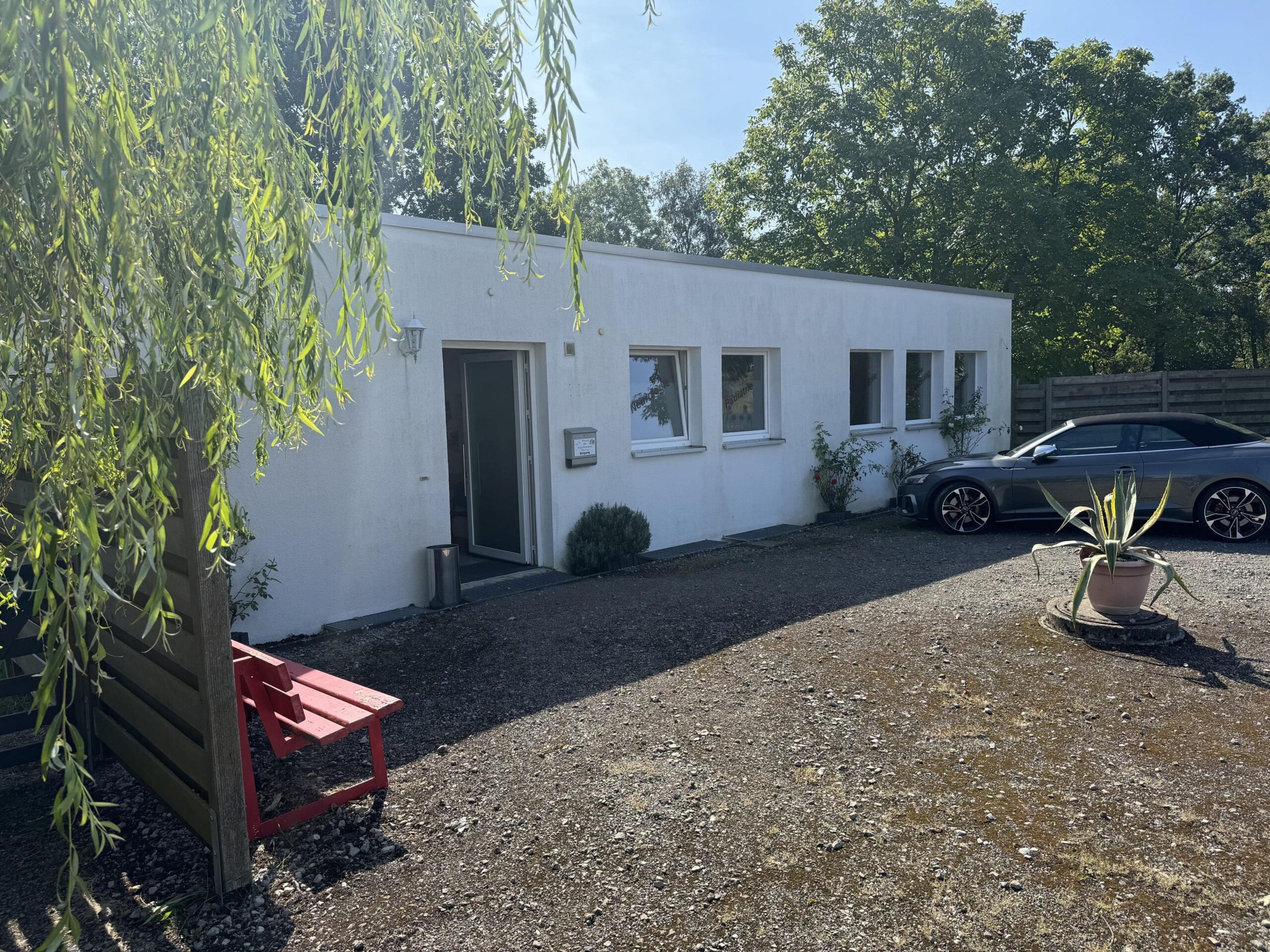 (Objekt 116) Das 1963 erbaute – und mit 183m² Wohnfläche in großzügige – Einfamilienhaus hat Einiges zu bieten: der Eingangsbereich mit Kamin-Sitzecke, fünf Zimmer, eine offene Küche mit Terracottafliesen, Einbauküche und Essbereich sowie das angrenzende Wohn-/Esszimmer mit Kamin bieten viel Platz zum Ausbreiten und Wohlfühlen. Das Badezimmer verfügt sowohl über eine Dusche als auch über eine Whirlwanne. Des Weiteren gibt es ein Gäste-WC im Eingangsbereich. Der Keller hat einen separaten Eingang zu einem ausgebauten Souterrain. Dieses bietet nicht nur mehr Platz (ca. 64 m² Wohnfläche), sondern auch eine gute Gelegenheit eine Einliegerwohnung – egal ob zu privaten oder gewerblichen Zwecken – zu schaffen. Denn hier stehen ein Wohn- und ein Schlafzimmer, ein Badezimmer mit Dusche und ein Abstellraum zur Verfügung. Ein direkter Gartenzugang ist ebenfalls vorhanden. Beheizt wird das Haus über eine Gas-Zentralheizung aus dem Bj. 2024. Die jetzige Ergotherapiepraxis steht zu gewerblicher oder private Nutzung bereit, ist 2007 als Passivhaus erbaut worden. Auf rund 230 m²Nutzfläche verteilen sich der Wartebereich, 4 Therapieräume, ein Abstellraum, ein Personalraum, ein Bad, zwei separate WC´s, ein Lager- sowie ein Technikraum. Der Therapieraum 3 ist ein große Halle mit ca. 6 Metern Deckenhöhe und separaten . Eine im Jahr 2020 installierte Photovoltaikanlage generiert eigenen Strom, die jährlich ca. 20.000 KW erwirtschaftet. Auf dem 5.307 m² großen Grundstück finden eine Gartenterrasse, ein hübsch angelegter Gartenteich mit kleiner Brücke, eine Sauna, ein ca. 1000 m² Pferde-Paddock (komplett umzäunt und mit Strom gesichert), ein größeres Gewächs- sowie ein Gerätehaus ihre Plätze. Überzeugen Sie sich bei einer Besichtigung von den Vorzügen dieser Immobilie und vereinbaren Sie einen Termin. Sollten Ihnen die Räumlichkeiten der Gewerbeeinheit nicht ausreichen, besteht die Möglichkeit einer Aufstockung von bis zu 2 weiteren Etagen oder ein weiterer Bau auf dem Grundstück.